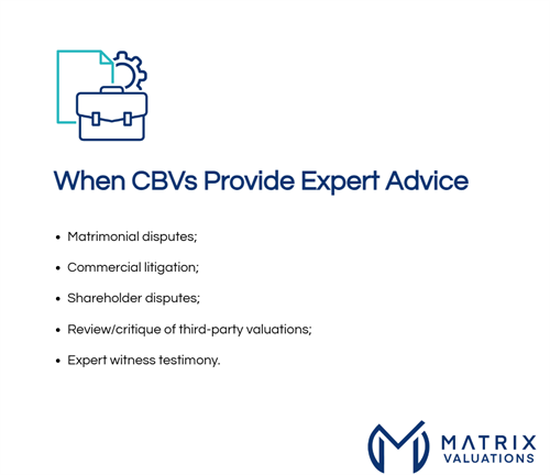 - Certified Business Valuations by a Chartered Business Valuator (CBV)